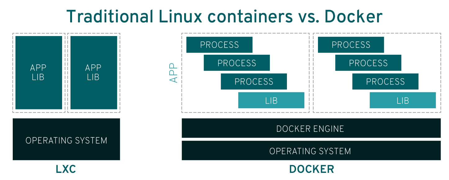 도커 기술이 완벽하게 Linux 컨테이너와 동일하게 작동하지는 않는다. 도커는 LXC(Linux 컨테이너) 기술을 기반으로 구축하였지만 개발해나가면서 종속 관계를 벗어났다. 도커 기술은 컨테이너를 실행하는 기능 이상의 것들을 제공하고, 무엇보다도 컨테이너 생성 및 구축, 이미지 전송, 이미지 버전 관리 프로세스를 용이하게 해준다.