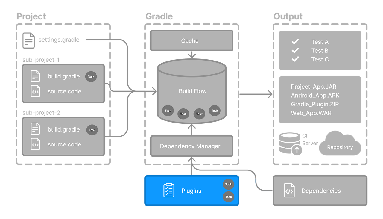 프로젝트에 플러그인을 적용하면 플러그인이 프로젝트의 기능을 확장할 수 있습니다.